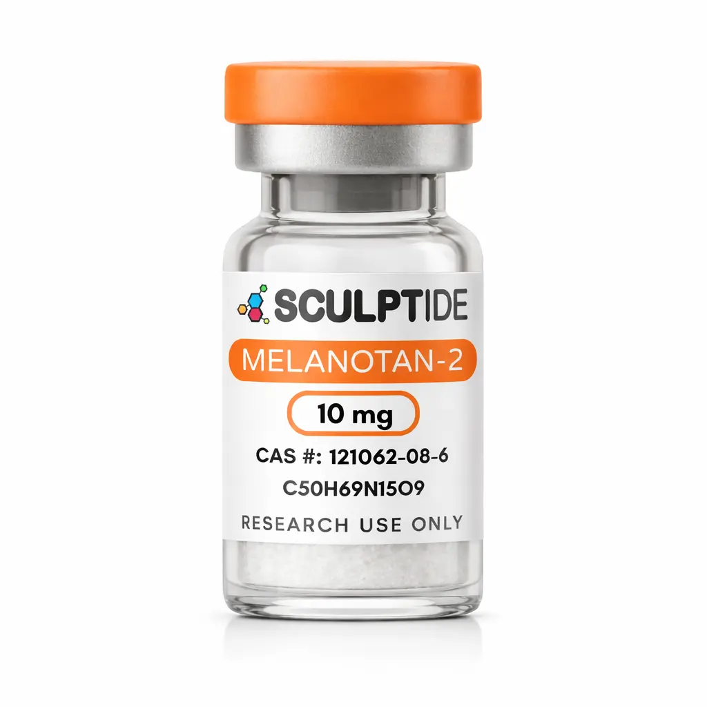 Melanotan 2 is not commonly stacked with any other peptide as it is generally an on-demand use peptide only. It is, however, related to PT-141 as PT-141 is a metabolite of Melanotan 2. Both peptides are synthetic cyclic peptide analogues that act on melanocortin receptors, particularly MC3R and MC4R in the central nervous system. Melanotan 2 stimulates melanin production in skin cells (melanocytes) while also activating central pathways involved in sexual arousal, while PT-141 was derived from Melanotan 2 only for its affects on sexual function without the melanin activity. Melanotan II is widely used in the skin and sexual performance category amongst adult researchers.